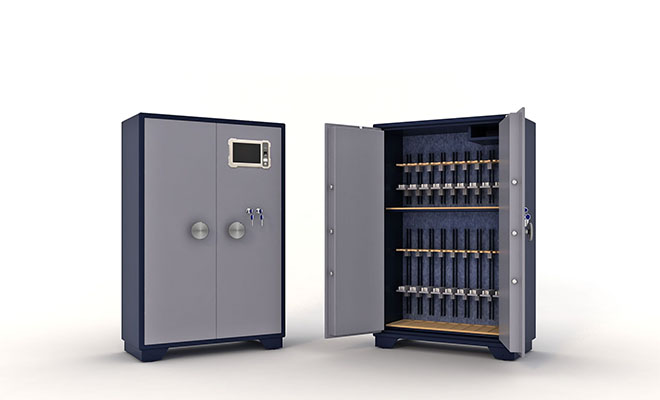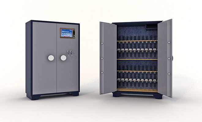 智能枪柜用于存放枪支弹药,并实现用户的日常领用枪弹、归还枪弹、紧急取枪弹和枪支维护保养等工作。枪弹柜满足 《GA1051-2013   枪支弹药专用保险柜保准》,可联网使用,也可独立使用